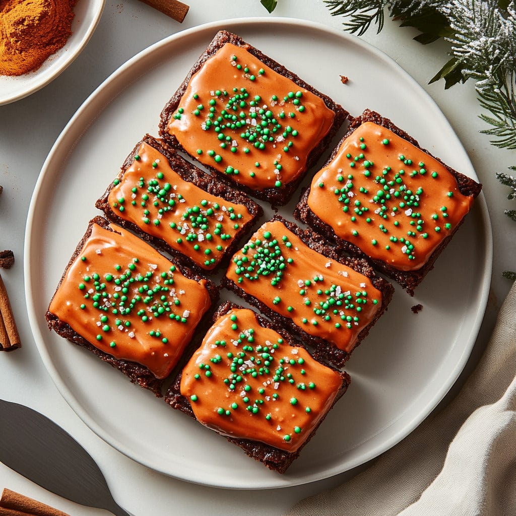 Festive Spiced Chocolate Almond Lebkuchen Bars with Orange Frosting bring the holiday spirit to your table with a delightful German treat. This vegetarian confection combines rich chocolate, crunchy almonds, and aromatic spices, topped with a vibrant orange frosting. Perfect for festive gatherings, these bars are a delightful addition to any dessert table.