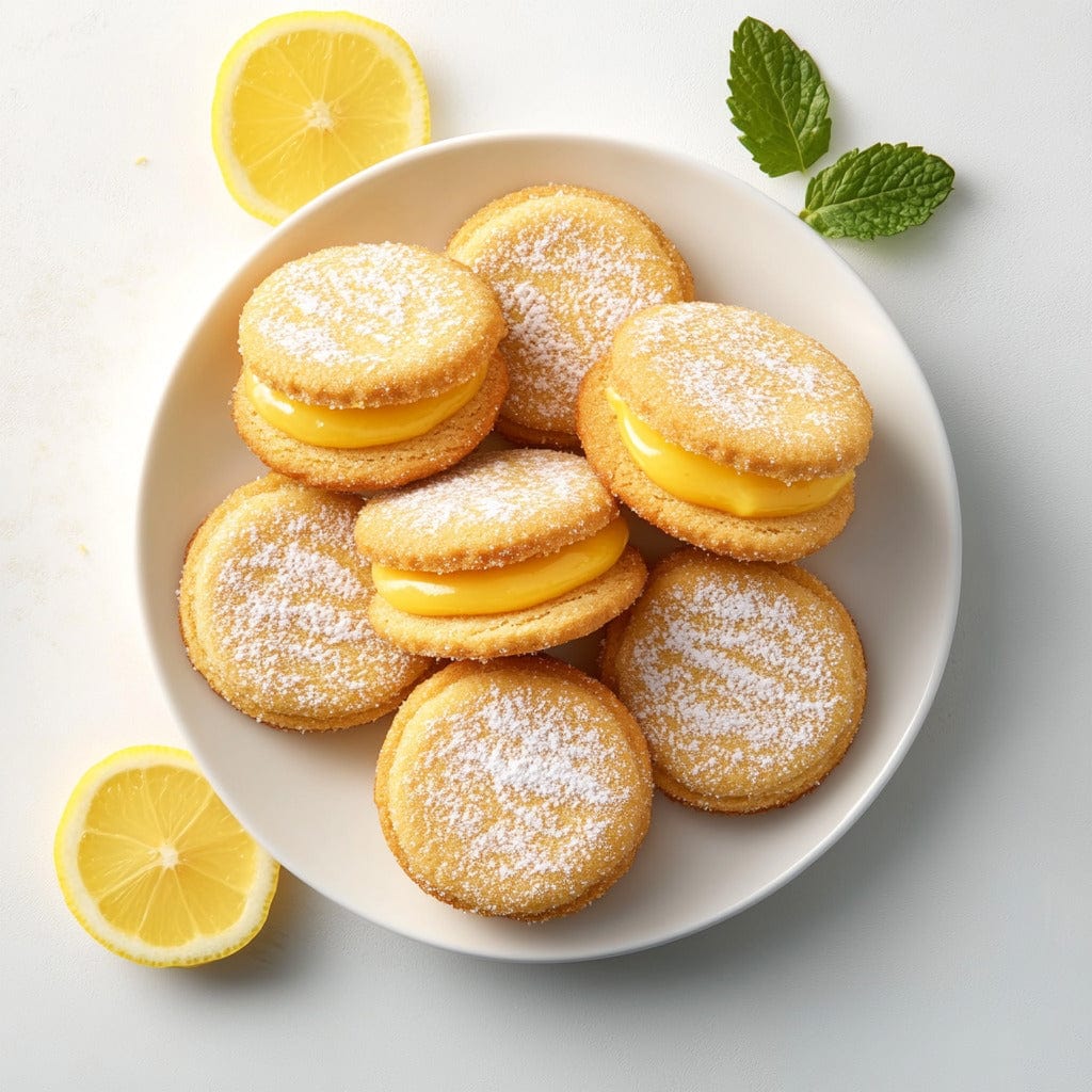 Lemon Burst Shortbread Sandwich Cookies with Luscious Curd Filling