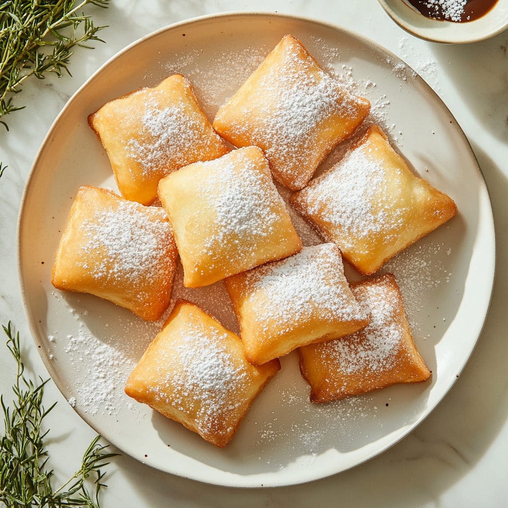 Experience the magic of New Orleans with these fluffy, golden beignets, reminiscent of the famous Cafe Du Monde. Perfectly puffed and generously dusted with confectioners' sugar, these delightful treats are a family favorite, bringing the essence of the French Market to your home.