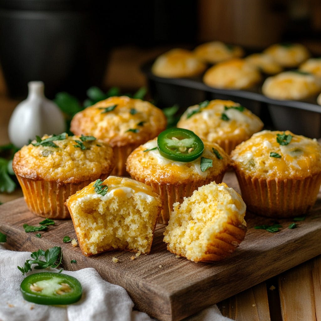 These Jalapeno Cheddar Cornbread Muffins are a delightful twist on traditional cornbread, featuring sharp Cheddar cheese and a spicy kick from jalapeños. Each muffin hides a surprise chunk of mozzarella, making them a cheesy, flavorful treat perfect for any occasion.