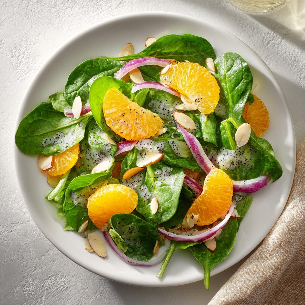 Refreshing Spinach Salad with Poppy Seed Dressing and Mandarin Oranges elevates your meal with a vibrant mix of baby spinach, juicy mandarin oranges, and crunchy almonds, all drizzled with a sweet and tangy poppy seed dressing. Perfect for a quick lunch or light dinner, this American cuisine salad is visually stunning and satisfying.