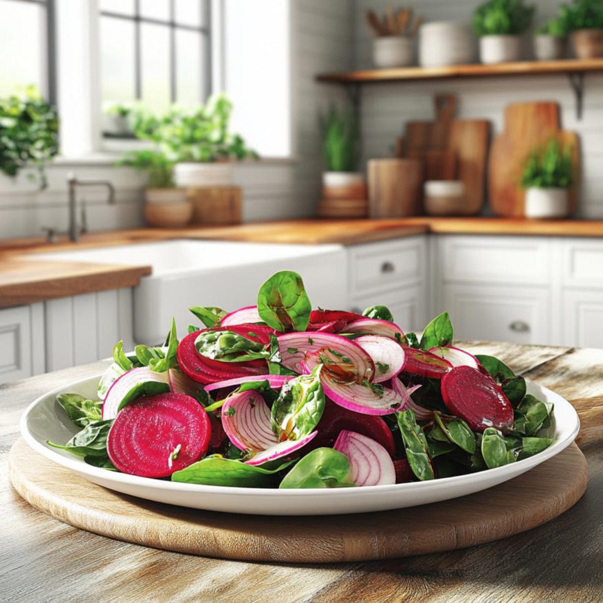 Balsamic Beet and Spinach Salad, a perfect vegetarian dish that combines the earthy sweetness of beets with the crispness of fresh spinach. This American cuisine salad is free from common allergens, making it a safe choice for everyone. The tangy balsamic dressing enhances the flavors, creating a colorful and nutritious meal or side dish.