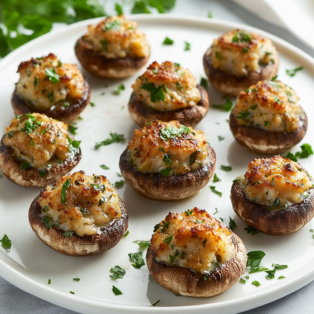 These Savory Crab-Stuffed Mushrooms are a delightful appetizer that combines the rich flavors of crab and cream cheese with a hint of garlic. Perfect for any gathering, these bite-sized treats are sure to impress your guests with their creamy, savory filling and tender mushroom caps.