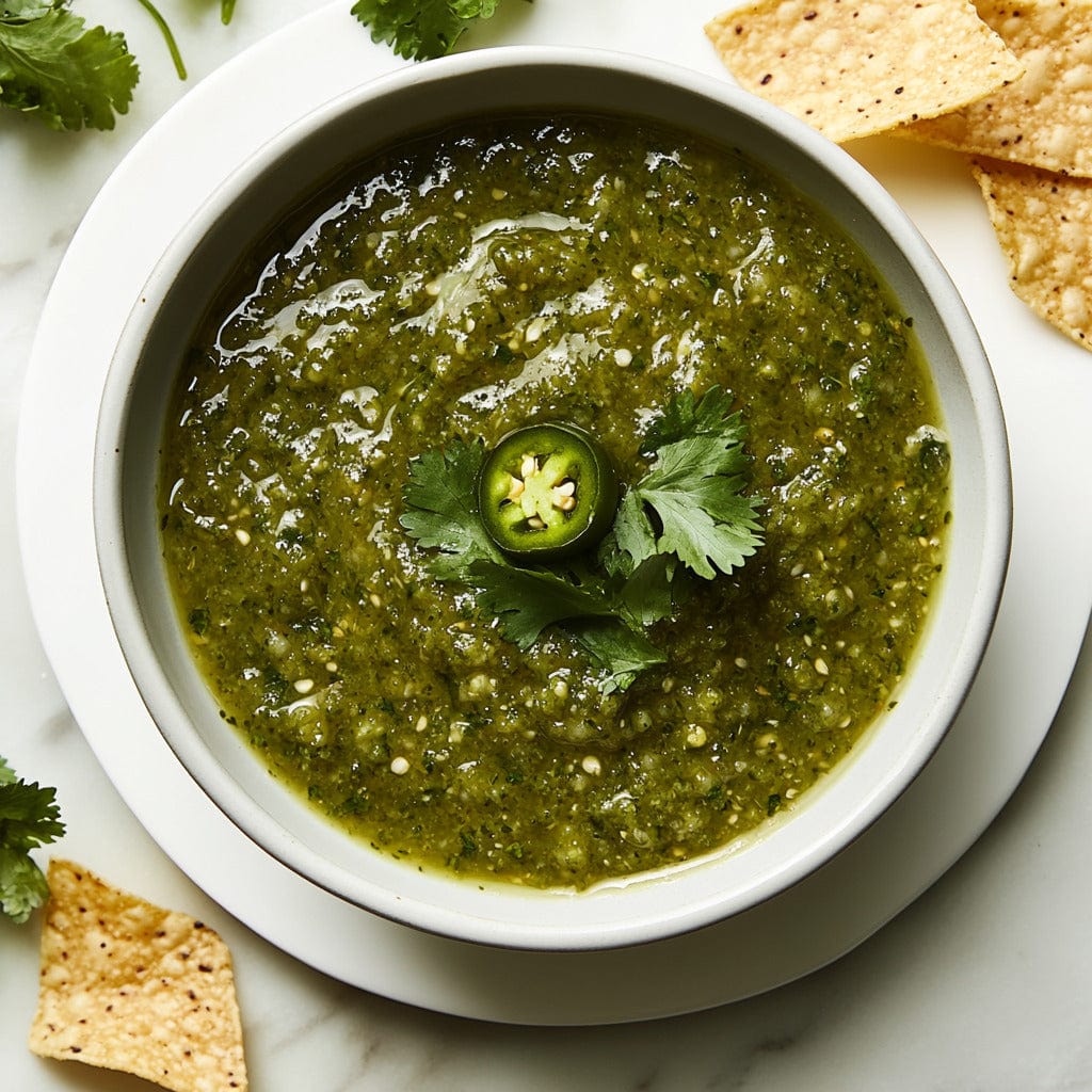 Enjoy your homemade Roasted Jalapeño Tomatillo Salsa Verde!